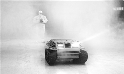 日前,在武昌方艙醫(yī)院,醫(yī)護(hù)人員操作防疫消殺機(jī)器人對(duì)方艙醫(yī)院內(nèi)部消毒。新華社記者 熊琦攝
