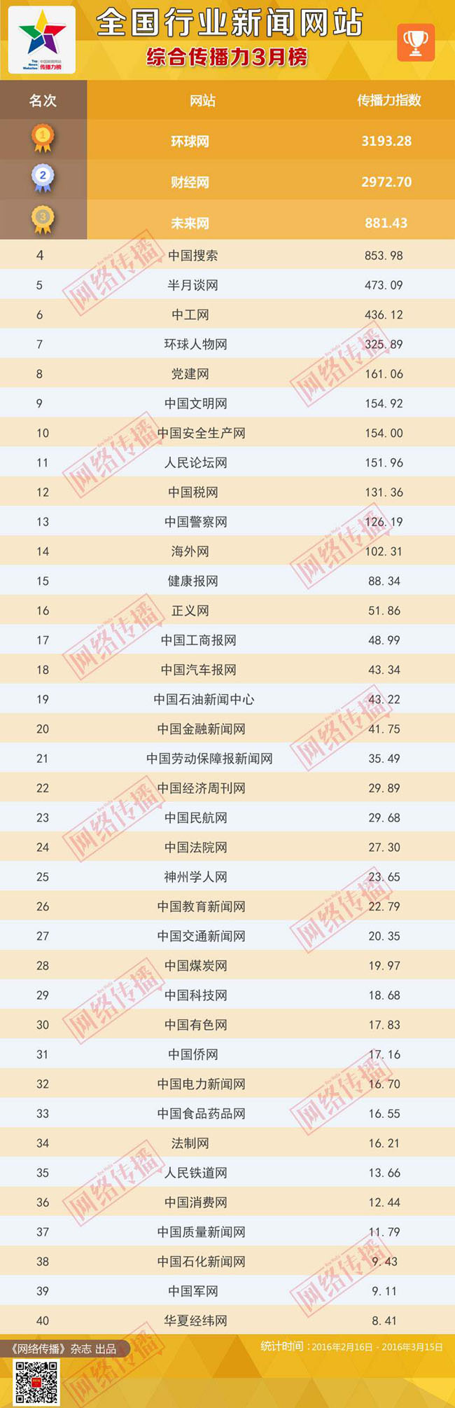 全國行業(yè)新聞網(wǎng)站傳播力2016年3月榜發(fā)布