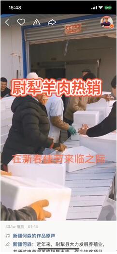 何淼通過(guò)快手平臺(tái)給尉犁羊肉帶貨。
