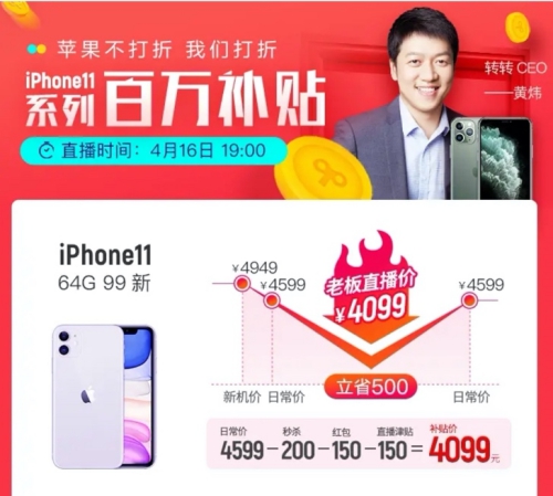 提供兩百萬(wàn)補(bǔ)貼,轉(zhuǎn)轉(zhuǎn)CEO黃煒直播賣(mài)手機(jī)