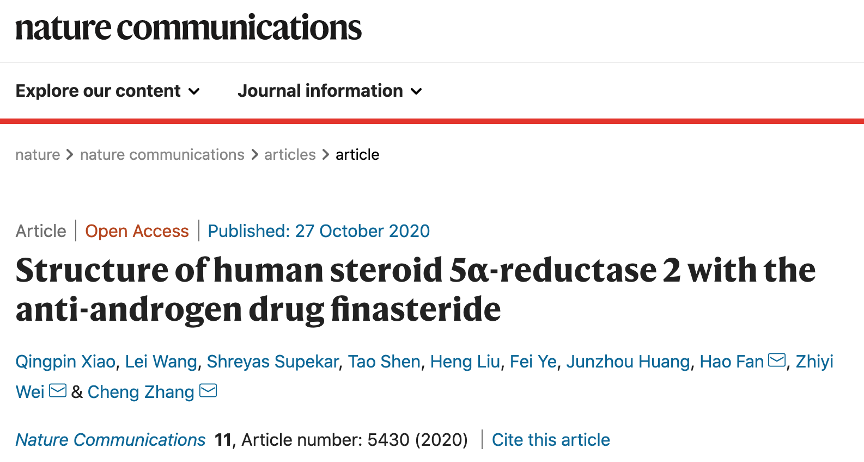該項(xiàng)聯(lián)合研究成果于近日登上了國(guó)際頂級(jí)期刊Nature子刊《 Nature Communications》。論文題為《人體類固醇II型5a還原酶與抗雄激素藥物非那雄胺的結(jié)構(gòu)研究》,由南科大生物系魏志毅副教授課題組與匹茲堡大學(xué)張誠(chéng)教授、新加坡A*STAR研究所范昊研究員、騰訊AI Lab黃俊洲博士帶領(lǐng)的研究小組合作完成。本次得到權(quán)威學(xué)術(shù)期刊發(fā)表及評(píng)審的高度評(píng)價(jià),也驗(yàn)證了該成果對(duì)藥物研發(fā)的創(chuàng)新價(jià)值。