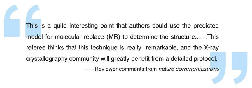 《Nature Communications》的一位評(píng)審對(duì)此創(chuàng)新方法給予了高度評(píng)價(jià):“作者能用預(yù)測(cè)的分子置換(MR)模型來(lái)確定晶體結(jié)構(gòu),這一點(diǎn)非常有趣。本評(píng)審認(rèn)為該技術(shù)確實(shí)非常出色,整個(gè)X射線晶體學(xué)界將從該方法中受益匪淺!