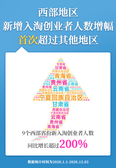 淘寶最新數(shù)據(jù)顯示,今年西部地區(qū)新入淘創(chuàng)業(yè)者人數(shù)增幅首次超越其他地區(qū),領(lǐng)跑全國(guó)。