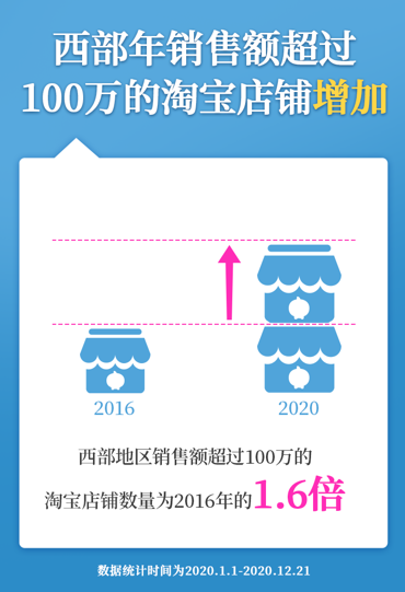 除了數(shù)量增加,西部地區(qū)在電商領(lǐng)域也迎來(lái)高質(zhì)量發(fā)展。淘寶方面介紹,2016年至今,西部地區(qū)皇冠及以上的淘寶店鋪數(shù)量增長(zhǎng)了109%;年銷(xiāo)售額超過(guò)100萬(wàn)的商家數(shù)量也達(dá)到了5年前的1.6倍。