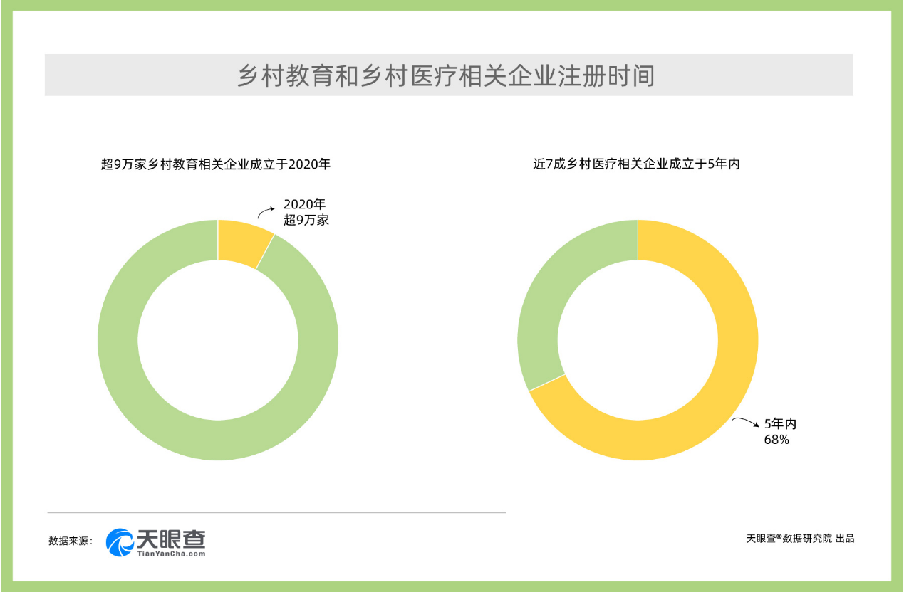 全面推進(jìn)健康鄉(xiāng)村建設(shè)——近七成鄉(xiāng)村醫(yī)療相關(guān)企業(yè)成立于5年內(nèi)。健康鄉(xiāng)村建設(shè)是全面推進(jìn)鄉(xiāng)村振興戰(zhàn)略的重要內(nèi)容,百姓健康是實(shí)現(xiàn)鄉(xiāng)村振興的前提和基礎(chǔ)。在農(nóng)村醫(yī)療建設(shè)方面,近年來,鄉(xiāng)村醫(yī)療的"空白點(diǎn)"不斷被補(bǔ)足,鄉(xiāng)村醫(yī)療企業(yè)蓬勃發(fā)展。天眼查大數(shù)據(jù)顯示,我國(guó)目前共有超54萬家鄉(xiāng)村醫(yī)療相關(guān)企業(yè)。值得注意的是,我國(guó)近七成的鄉(xiāng)村醫(yī)療相關(guān)企業(yè)成立于5年內(nèi)。