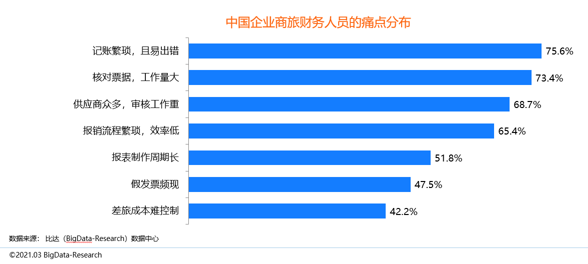 中國(guó)企業(yè)商旅財(cái)務(wù)工作面臨諸多問(wèn)題,財(cái)務(wù)管理水平一定程度上關(guān)系到企業(yè)的進(jìn)一步壯大發(fā)展。調(diào)查結(jié)果顯示,“記賬繁瑣、且易出錯(cuò)”和“核對(duì)票據(jù)工作量大”是企業(yè)財(cái)務(wù)人員的主要痛點(diǎn)。