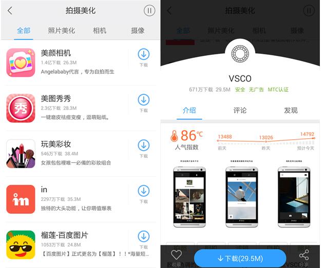 而后期處理類app在百度手機(jī)助手中更是玲瑯滿目,只有你想不到?jīng)]有這里實(shí)現(xiàn)不了的功能。獨(dú)特大頭貼讓你萌值爆炸的in、讓你的照片充滿活力的B612、媲美Photoshop的手機(jī)圖片編輯器PicsArt、擁有最強(qiáng)大最高大上濾鏡庫(kù)的VSCO……自從有了百度手機(jī)助手媽媽再也不用擔(dān)心我的朋友圈沒有人點(diǎn)贊了!