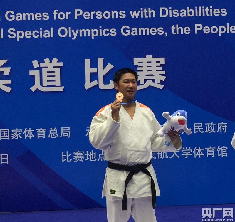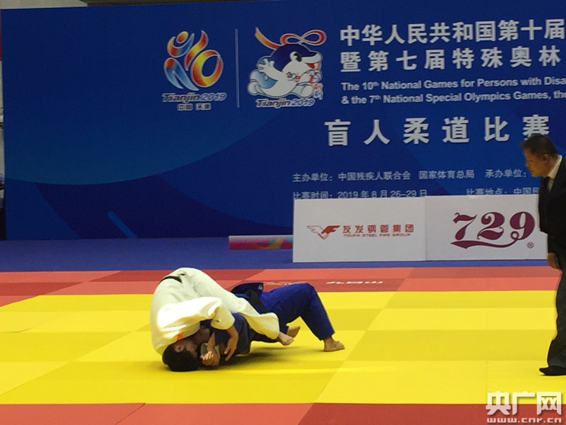 央廣網(wǎng)天津8月31日消息(記者褚夫晴)藍色的地板,紅黃相間的地毯,聲浪滾滾的助威聲。8月29日,在中國民航大學體育館的賽場中央,經(jīng)歷了4分05秒的加時后,江西隊的馮斌與遼寧隊的齊計龍結(jié)束了全國第十屆殘運會暨第七屆特奧會盲人柔道男子81公斤級以上無差別級銅牌賽的爭奪。