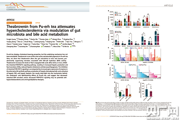 《Nature》子刊《Nature Communications》刊發(fā)賈偉教授及團(tuán)隊(duì)完成的關(guān)于普洱茶降脂機(jī)制的研究