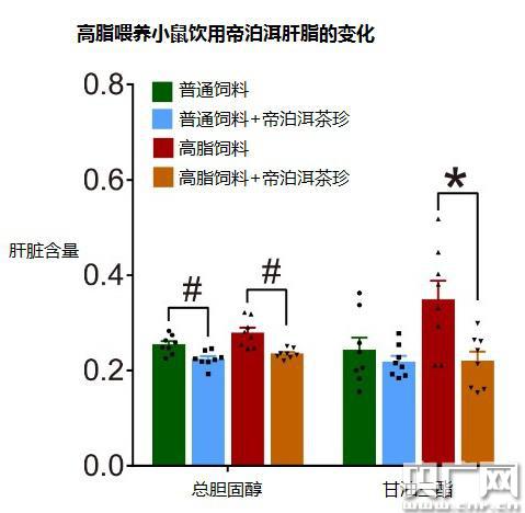 在人體實(shí)驗(yàn)中,13名男性健康受試者進(jìn)行一周的標(biāo)準(zhǔn)飲食,之后每天飲用3g帝泊洱普洱茶茶珍,持續(xù)4周,結(jié)果發(fā)現(xiàn)膽固醇和甘油三酯水平顯著降低。動(dòng)物實(shí)驗(yàn)也發(fā)現(xiàn)了類似的結(jié)果。