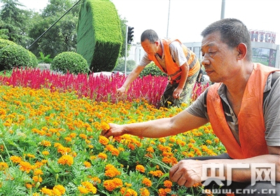 央廣網(wǎng)天津8月18日消息(記者褚夫晴)全運會開幕在即,紅橋區(qū)市容園林部門用夏槿、金葉薯等花卉以及海棠、紅葉桃等灌木在全區(qū)主干路沿線、旅游景點等地布置綠化小品十余處,扮靚市容市貌,營造喜迎全運會的濃厚氛圍。