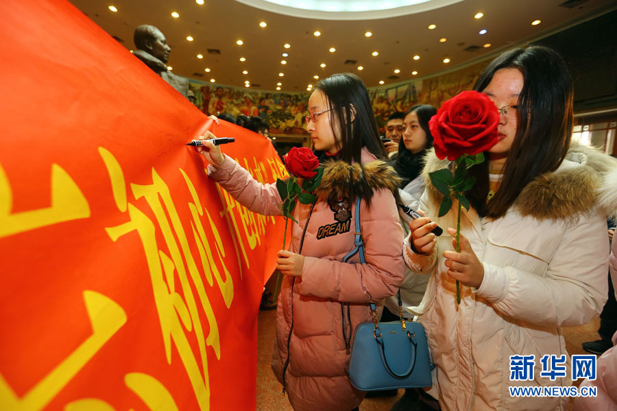 1月14日,眾多大學(xué)生參與活動,并在橫幅上簽名。新華網(wǎng)發(fā)(劉東岳 攝)