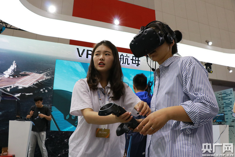 央廣網(wǎng)天津5月16日消息(記者褚夫晴)16日,第二屆世界智能大會(huì)在天津開幕。本屆世界智能大會(huì)除了會(huì)議、展覽、賽事,還增加了全新的智能體驗(yàn)環(huán)節(jié)。圖為觀眾體驗(yàn)VR虛擬航母。 -
