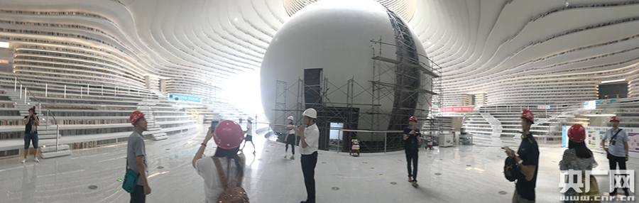 走入濱海文化中心正門,可以看到的是有“濱海之眼”之稱的濱海圖書館,圖書館最大的特點是其內部的球形多功能廳。這個球形多功能廳外部建成了一個穹幕影院,40萬個LED燈珠將鑲嵌在全穿孔鋁板上,大球的外部可以播放電影。大球內部則是濱海圖書館的報告廳,廳內可容納將近100人,并采用可伸縮座椅設計。目前,該圖書館已經運進入18萬冊圖書,而后續(xù)藏書量可達130萬冊。