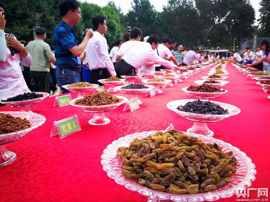 8月26日葡萄節(jié)開幕當天,在世界上最甜蜜的街道—吐魯番葡萄長廊舉辦了“無核白”“淑女紅”“火焰無核”等216個品種鮮食葡萄和葡萄干、葡萄酒和馕系列展示、品嘗活動,展出了“吐魯番紅葡萄”、“馬奶子”、“波爾萊特”7個品種果穗最大最小、果粒最大最小、最甜、風味最獨特、口感最脆等多種特質葡萄,讓各地游客觀眾大飽口福,大飽眼界,令人向往。