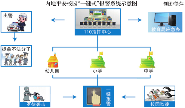 2014年10月,“一鍵式”報(bào)警系統(tǒng)在武漢市中小學(xué)、幼兒園推廣。