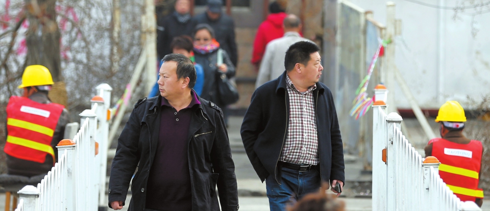 4月7日9時(shí)42分,在西北路,兩位行人四處張望,尋找出行捷徑。