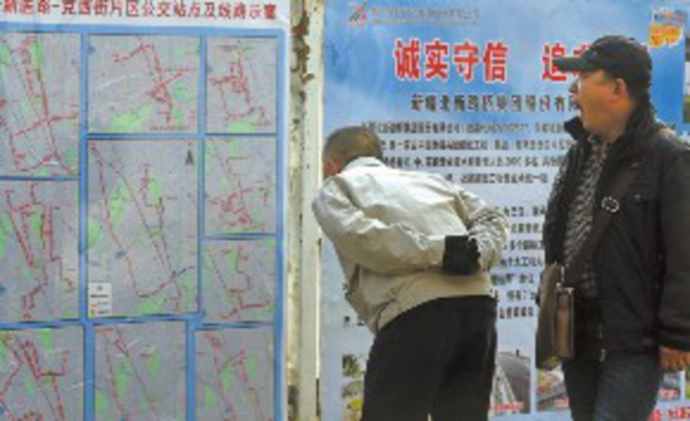 7日10時(shí)01分,在西北路,一名行人在查看公交線路示意圖。