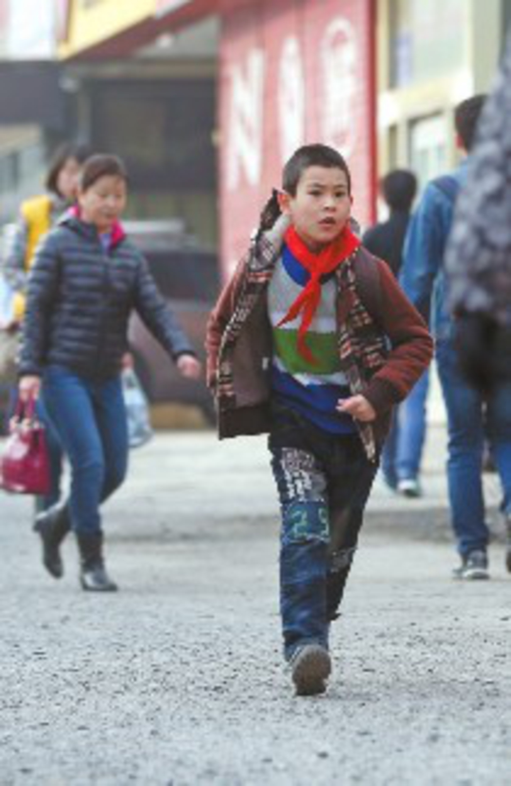 7日9時(shí)35分,在阿勒泰路,一名學(xué)生一路小跑趕往學(xué)校。