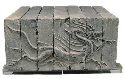 1976年3月,常州南郊茶山戚家村發(fā)現(xiàn)一座南朝墓葬,其中出土了850多塊畫(huà)像磚。這批南朝畫(huà)像磚不僅數(shù)量眾多、題材豐富、布局考究,而且圖像清晰,制作工藝精湛,雕刻手法多樣。按題材可分為人物、神獸和花紋三類。其中最值得稱道的是一組龍紋畫(huà)像磚,由7塊單磚拼鑲而成,長(zhǎng)34厘米,寬35.2厘米,高16.5厘米,呈淺浮雕的立體圖案。
