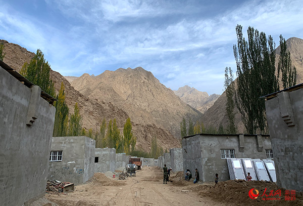 記者在村里看到,由北京援疆資金支持的安居富民房正在緊張施工中,房屋經(jīng)過統(tǒng)一的規(guī)劃,預(yù)留出街道、廣場等公共設(shè)施位置,每戶房屋都預(yù)裝上了下水道和電力設(shè)施,并鋪上從山外買來的地板磚。