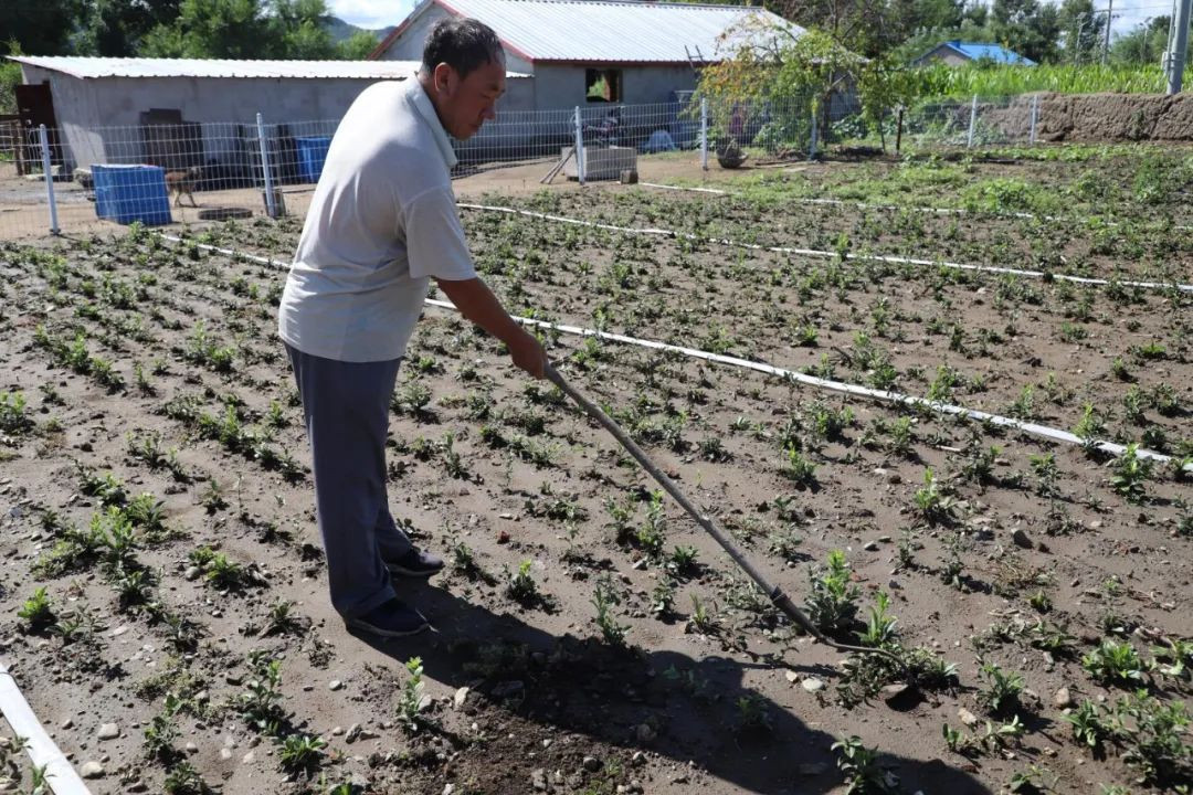 走進(jìn)內(nèi)蒙古興安盟扎賚特旗巴達(dá)爾胡鎮(zhèn)寶日索格社區(qū)劉根柱家,只見院落整潔干凈、房屋窗明幾凈,庭院東側(cè)種植著豆角、茄子、黃瓜等種類繁多的蔬菜,西側(cè)則種植著蒼術(shù),作物外圍的白色護(hù)欄更顯院落整體整潔明朗。