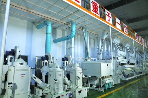 內(nèi)蒙古華貿(mào)食品科技有限公司大米加工車間的智能生產(chǎn)線。何娜 攝