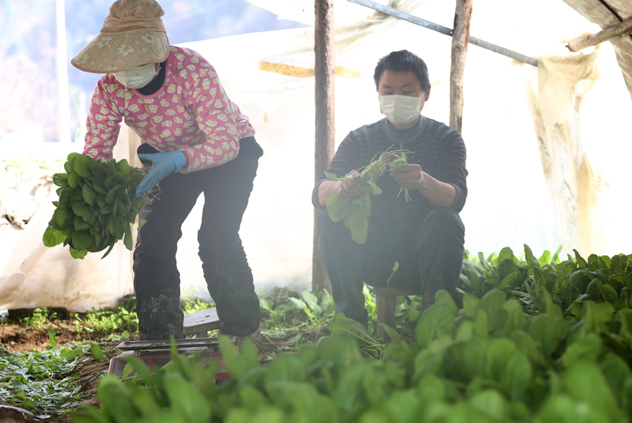 15日,湖北省十堰市張灣區(qū)花果街辦安溝村村民正在田間澆地培墑撒種、采收蔬菜。該村有集中連片土地250余畝,是城區(qū)鮮菜主要種植基地,為確保農(nóng)業(yè)生產(chǎn)和城市供應(yīng),該村以疫情防控為底線,采取統(tǒng)購(gòu)農(nóng)資、分散錯(cuò)時(shí)等辦法有序開(kāi)展春播生產(chǎn),確保將疫情損失降至最低。