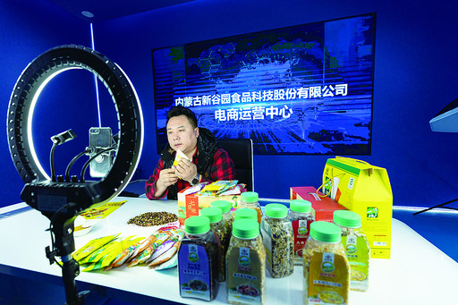 走進(jìn)內(nèi)蒙古新谷園食品科技股份有限公司電商運(yùn)營中心,記者看到主播正在向屏幕前的觀眾介紹公司的主要產(chǎn)品——預(yù)熟雜糧。