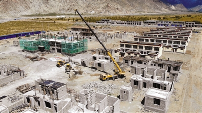 圖為正在修建的山南市扎囊縣卓于水庫移民搬遷安置建設(shè)項(xiàng)目。