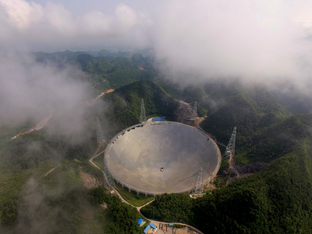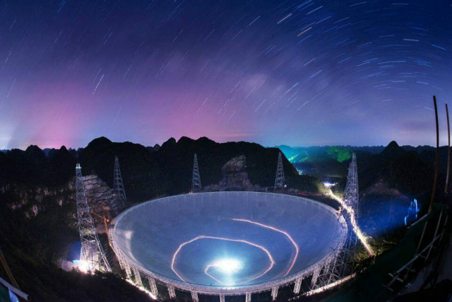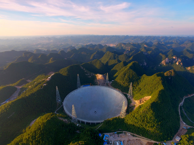 FAST總工藝師王啟明說,任何科學(xué)項目的建立都有其科學(xué)目標。FAST項目的科學(xué)目標排在最前列的是探索宇宙起源、尋找脈沖星,也包括地外文明的探索。FAST能接收到137億光年外的電磁波信號,這個距離接近宇宙邊緣。也就是說,如果銀河系內(nèi)存在外星文明,他們的信息也很有可能被FAST發(fā)現(xiàn)。圖為FAST。攝影:代傳付