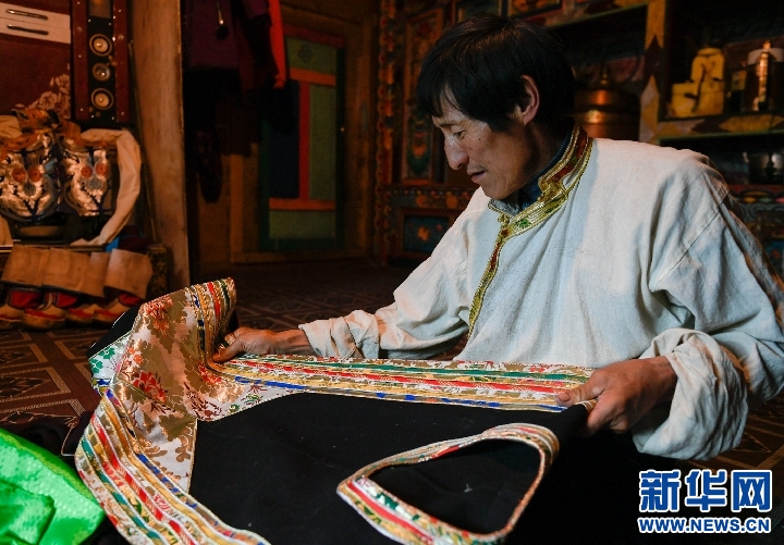 白瑪金巴在家中展示做好的藏裝(10月24日攝)。新華社記者 劉東君攝