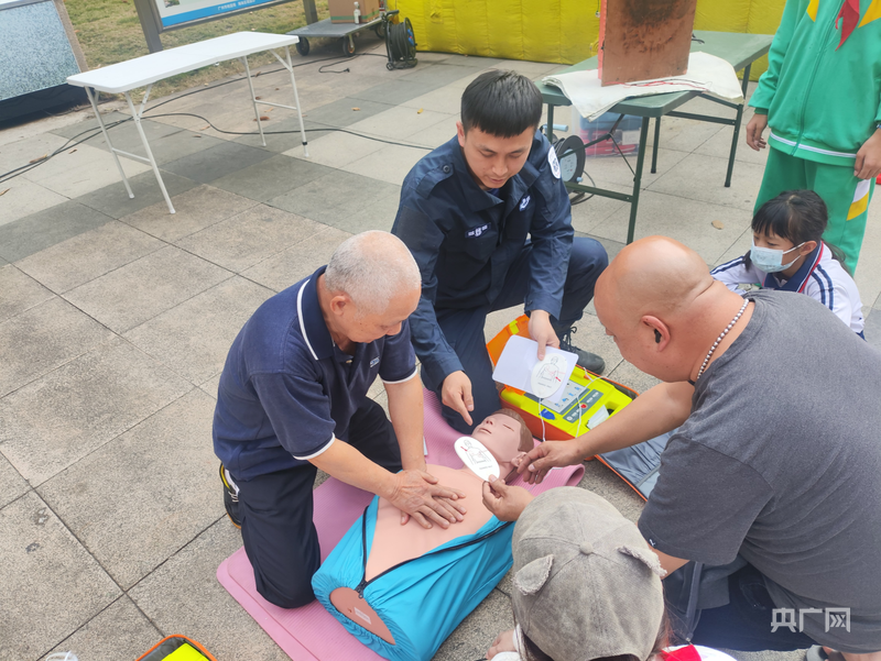 社區(qū)居民學習心肺復蘇技能(央廣網發(fā) 海珠區(qū)應急管理局供圖)