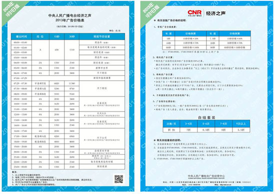 日前,2013年中央人民廣播電臺(tái)中國(guó)之聲、經(jīng)濟(jì)之聲廣告價(jià)格表正式發(fā)布,全權(quán)負(fù)責(zé)經(jīng)濟(jì)之聲廣告業(yè)務(wù)經(jīng)營(yíng)的央廣廣告公司授權(quán)本網(wǎng)站獨(dú)家刊載,未經(jīng)授權(quán)請(qǐng)勿擅自轉(zhuǎn)載。