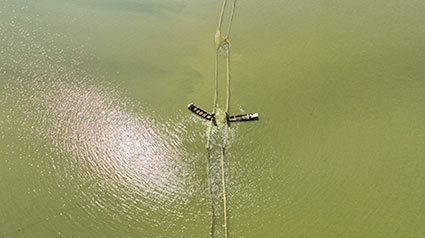 碧波蕩漾、水光瀲滟的湖面上,魚躍人歡,一片豐收喜悅。