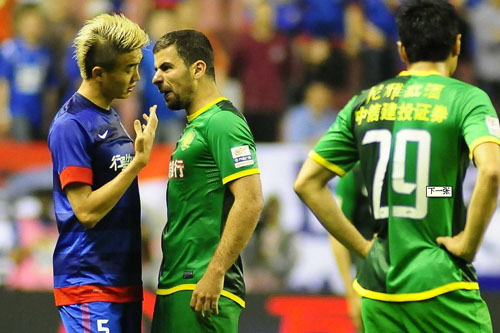 北京時間5月26日晚,2013賽季中超聯(lián)賽在第11輪迎來首場京滬大戰(zhàn),上海申花坐鎮(zhèn)主場虹口足球場迎戰(zhàn)北京國安。比賽補時第3分鐘,戴琳與利馬出現(xiàn)沖突,利馬領到第2張黃牌被罰下。