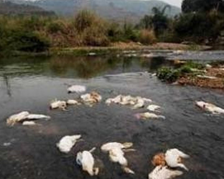 四川彭山:上千只死鴨被棄南河河道