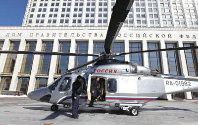 俄總理梅德韋杰夫乘直升機(jī)上班