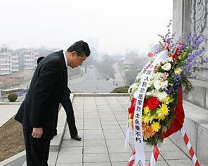 中國駐朝使館祭掃志愿軍烈士墓