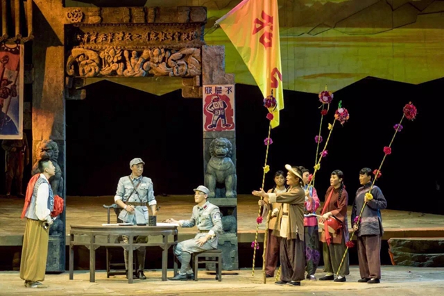 查明哲導演將編劇馮俐在《中華士兵》劇作中悉心呈現(xiàn)出的三條主體脈絡一氣呵成地磅礴呈現(xiàn)在話劇舞臺上,將地域文化特點融入全劇豐富而統(tǒng)一的美學表達中。編劇獨特設置的戲中戲也頗具特色,將“楊家將”舉家上陣御敵的故事融入到主線當中,兩相照應。《中華士兵》以深邃、蒼涼、沉渾的敘述氣質(zhì),以情以汗以淚以不甘泯滅的記憶,還原了一個偉大民族曾經(jīng)的底色。