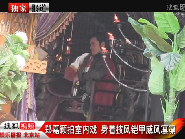 鄭嘉穎拍室內(nèi)戲 身著鎧甲披風(fēng)威風(fēng)凜凜