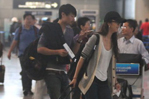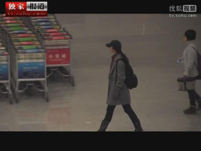 湯唯現(xiàn)身機場電話不離手