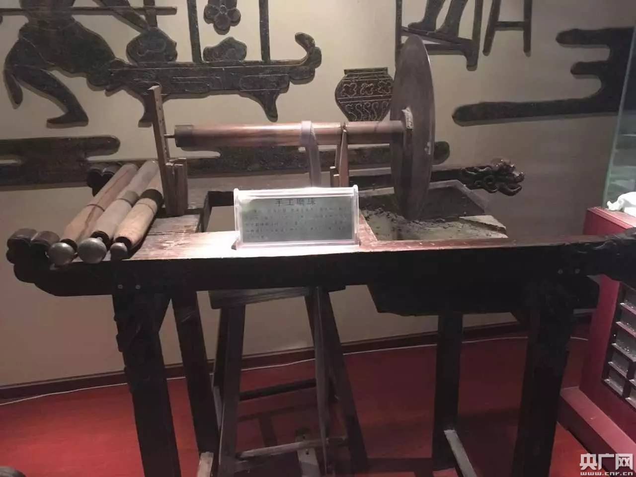 在酒泉夜光杯廠的展示大廳里,有一個(gè)特別展區(qū)。這里陳列著各式各樣的老藝人們的曾經(jīng)使用過的工具。柔軟的燈光下,仿佛當(dāng)代傳承人與從古到今一代又一代夜光杯工匠之間的對(duì)話。