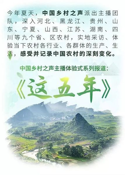 中國鄉(xiāng)村之聲這五年,見證了十八大以來中國農(nóng)村日新月異的這五年。為了感受并記錄中國農(nóng)村這五年的深刻變化,今年夏天,中國鄉(xiāng)村之聲派出主持人團隊,歷時兩個多月,深入河北、山東、寧夏、四川、黑龍江等九個省、區(qū)的農(nóng)村,實地采訪、體驗當(dāng)下農(nóng)村各行業(yè)、各群體的生產(chǎn)、生活。