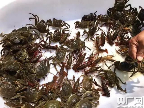 搖著槳,主播坐在一條小漁船上,眼前是一片水塘。這里是“王鮮記”的水產(chǎn)養(yǎng)殖基地。他們銷往全國各地的水產(chǎn)品,就藏在這一片片水塘里,F(xiàn)在,主播慧思要體驗下湖撈螃蟹。不一會兒,一網(wǎng)活蹦亂跳的螃蟹和小龍蝦就被撈了上來。
