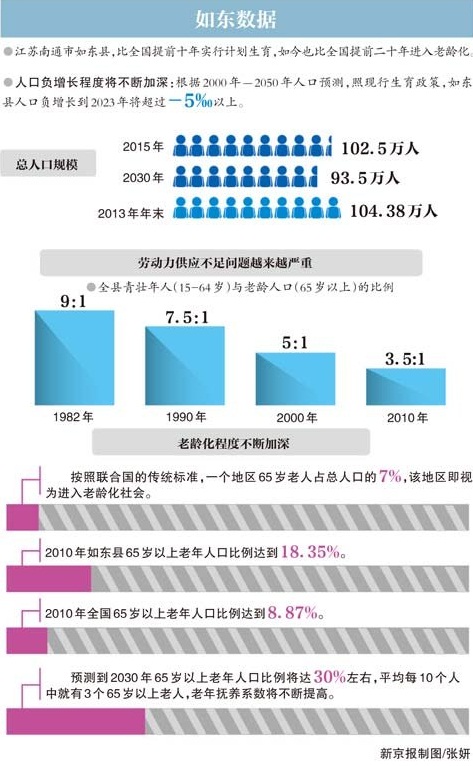 曾被國務(wù)院授予“全國計(jì)劃生育紅旗單位”稱號(hào)的如東縣,近年來因嚴(yán)重老齡化再次被外界視為觀察中國未來的窗口。