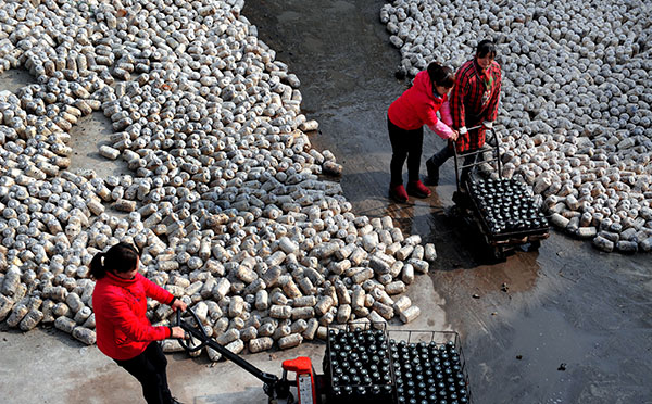 1月6日,當(dāng)?shù)厝罕娫邛无r(nóng)食用菌專業(yè)合作社生產(chǎn)菌種。