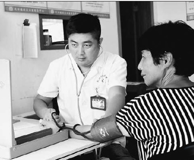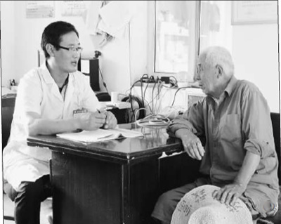11點(diǎn),上午的病人終于看完。施震林伸伸腰,趴在桌子上休息5分鐘后,又拿起了血壓監(jiān)測(cè)儀,準(zhǔn)備動(dòng)身!鞍从(jì)劃,今天要去上莊村!笔┱鹆终f(shuō),“最近天氣太熱,村里有幾位老人身體不好,我過(guò)去看一下。”