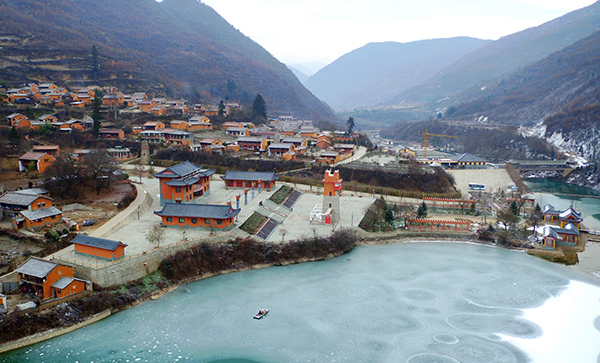 這是實(shí)施生態(tài)旅游扶貧后的甘肅省隴南市宕昌縣官鵝溝景區(qū)內(nèi)一處民俗村(2016年12月1日攝)。