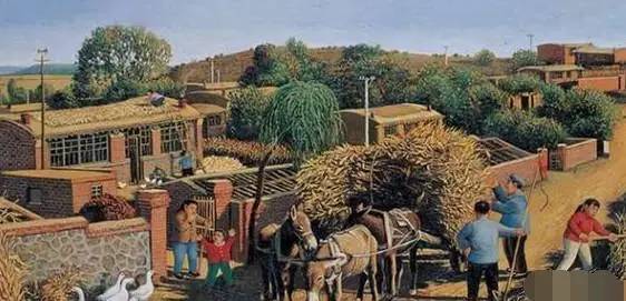 城里的學(xué)生們來村里勞動(dòng)的場面。